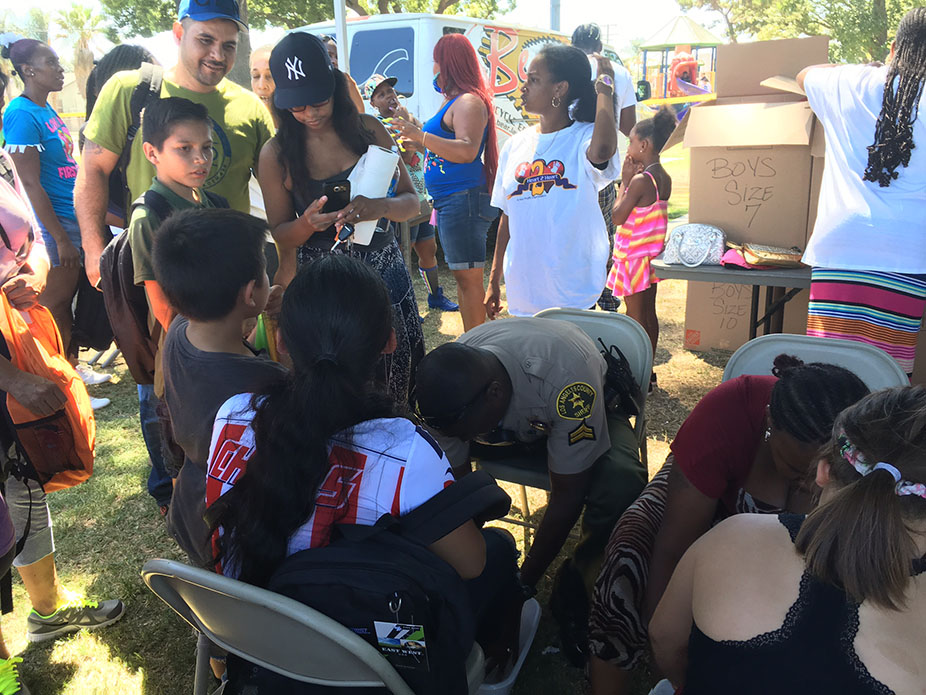 H2H partnered with councilwoman, Emma Sharif from Distrust 4 on August 13, 2016 at Kelly Park in Compton to give away 200 pair of new shoes, 300 back packs, hair cuts and a day of fun. We also had the police department washing the children feet.